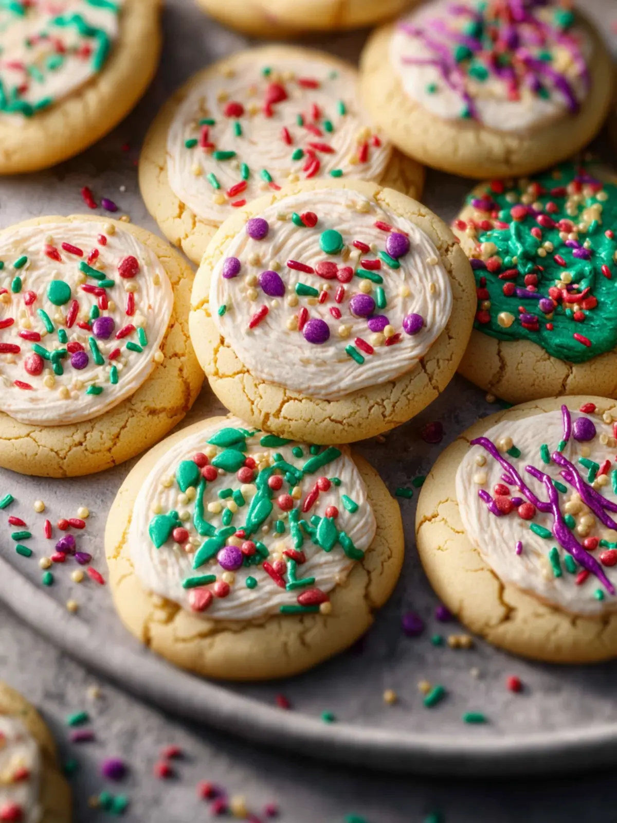 7. If desired, decorate cooled cookies with buttercream frosting and top with sprinkles. For the pictured frosted cookies, I used the Wilton 12 piping tip to swirl buttercream on top of the cooled cookies.