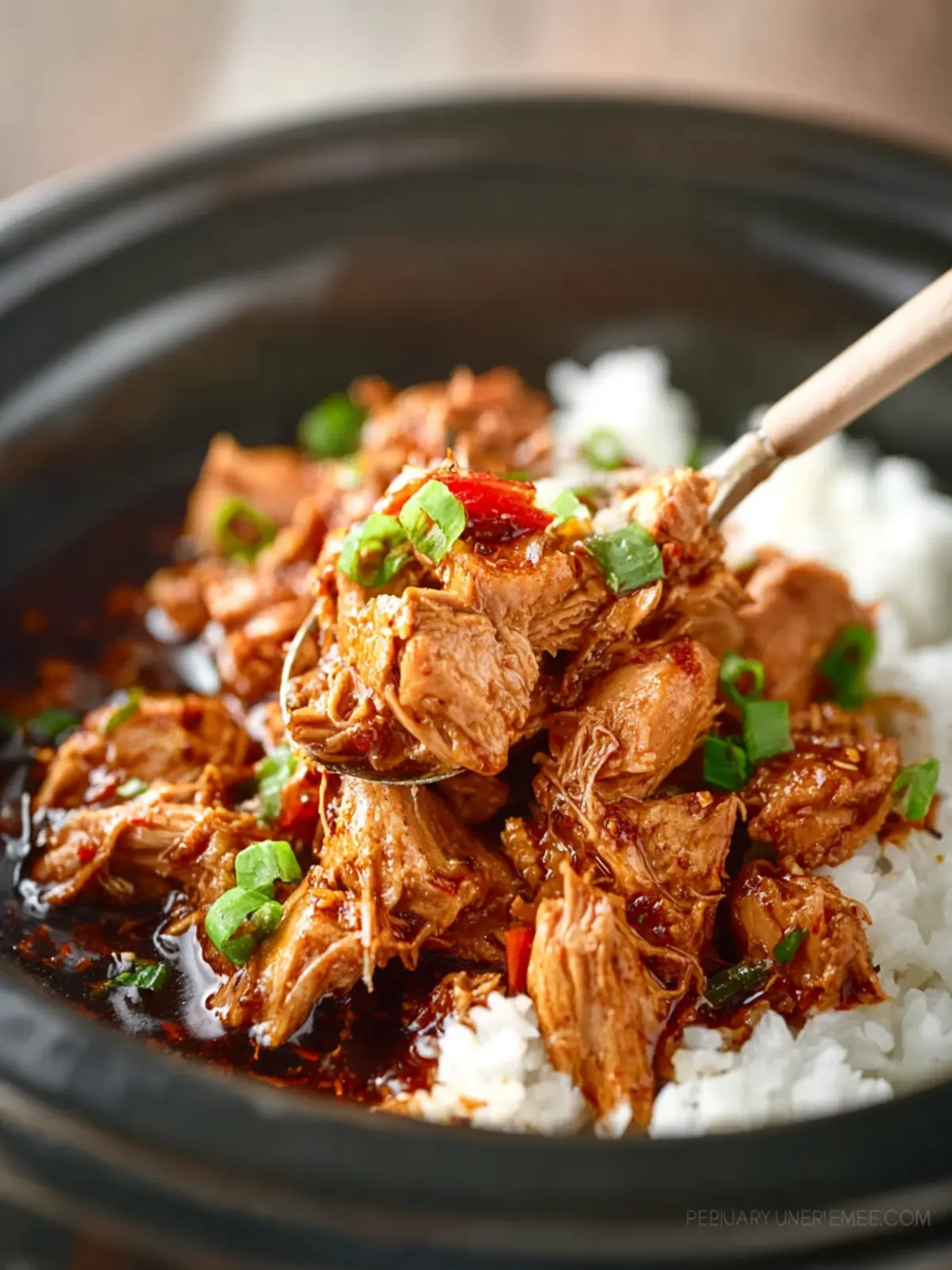 5. Once the chicken pulls apart easily, fish it out and shred with two forks (or fingers if you’re brave and impatient). Pop it back into the cooker, give it a good stir to get every shred coated, and it’s ready!