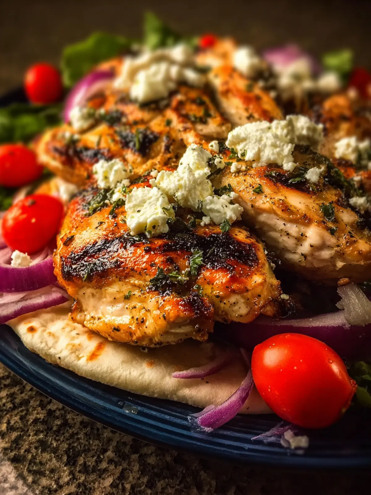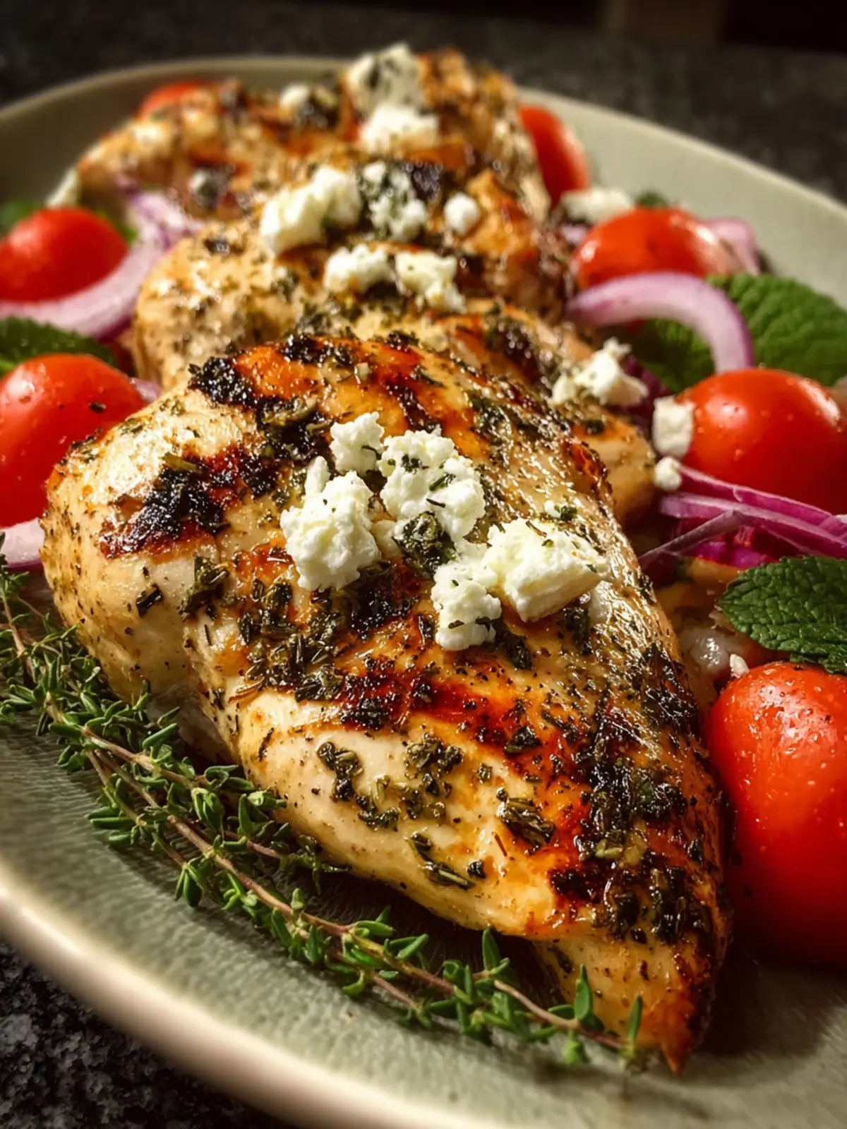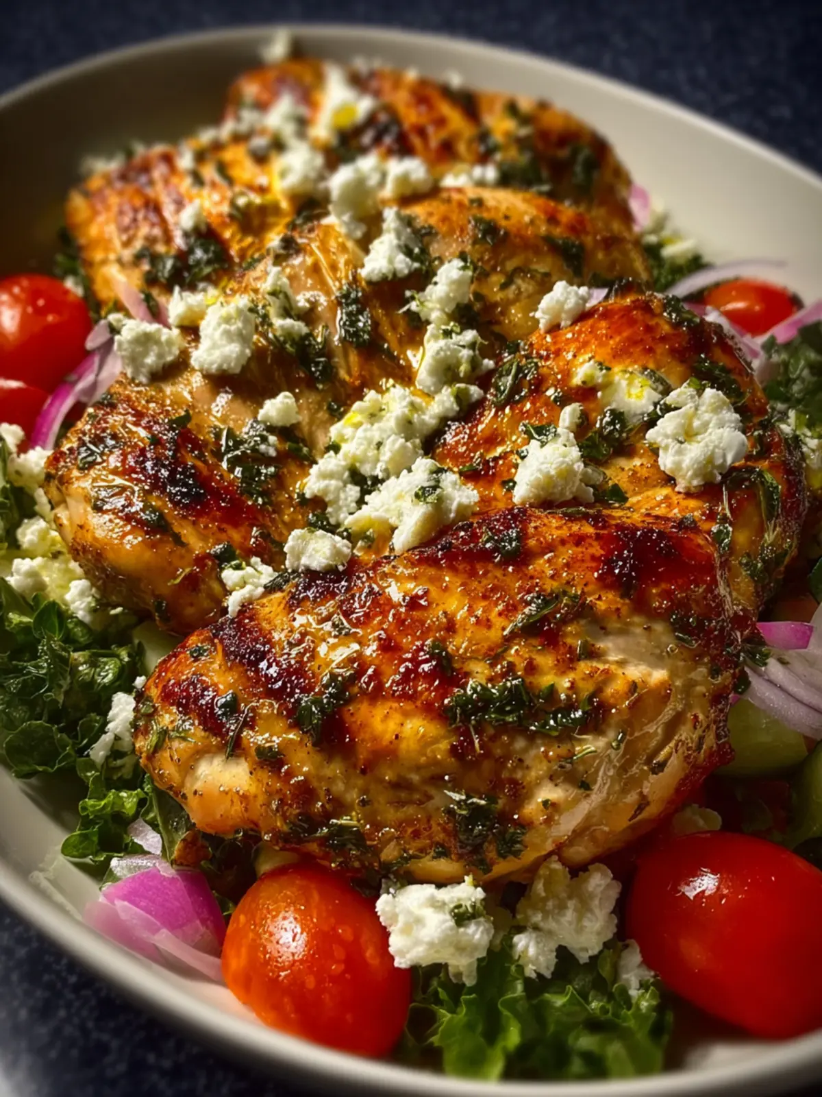 One popular twist on Greek Chicken includes the addition of sun-dried tomatoes and feta cheese. Simply mix chopped sun-dried tomatoes into the marinade, and top your chicken with crumbled feta before serving. This adds a tangy richness that pairs perfectly with a side of roasted vegetables.