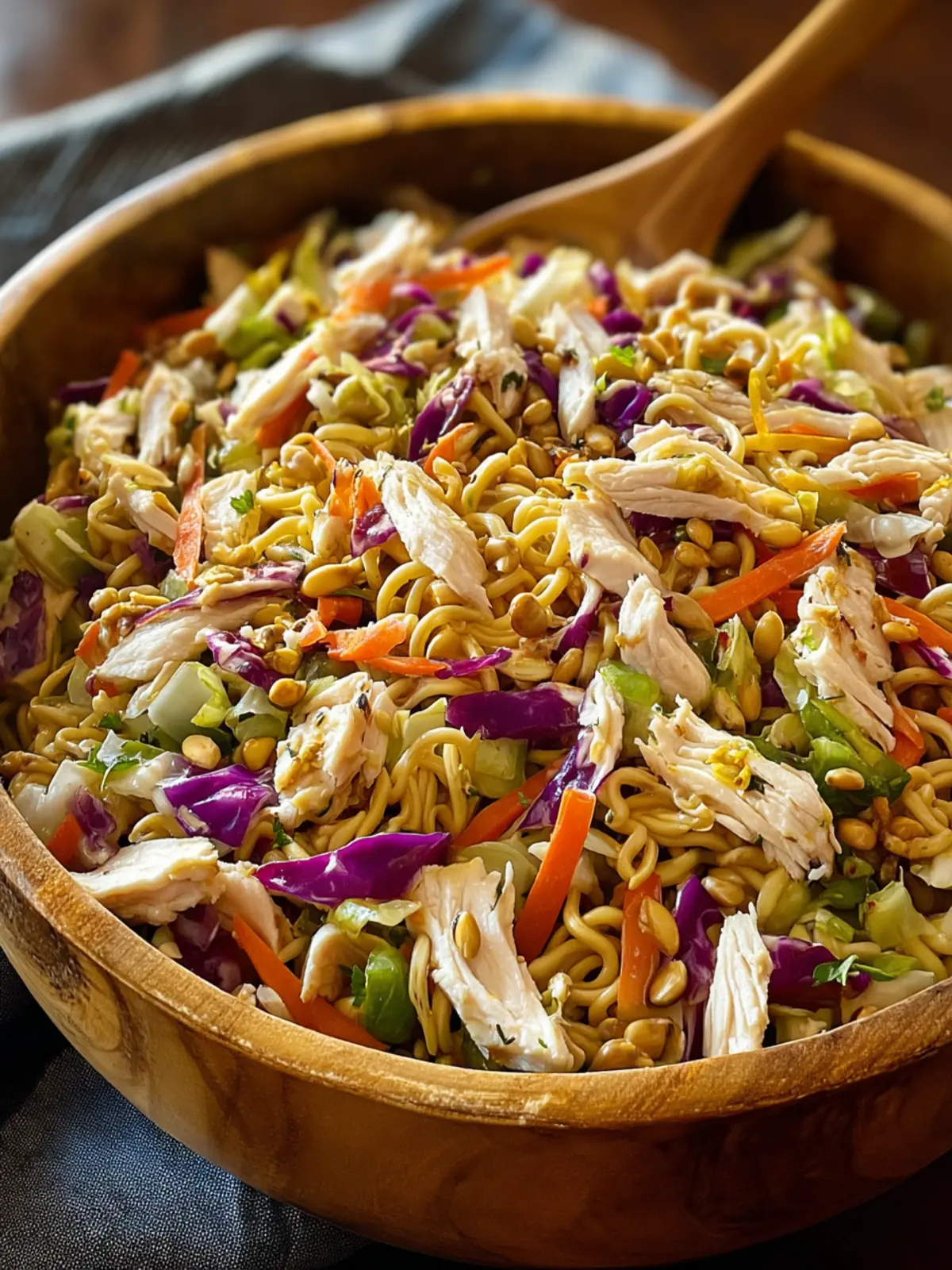 The beauty of this salad lies in its vibrant medley of textures and tastes, bringing together crisp vegetables, tender chicken, and of course, those iconic ramen noodles. Not only does it tickle your taste buds, but it’s also a fun and creative way to use your pantry staples. With just a bit of chopping, whisking, and tossing, you can whip up this salad in under 30 minutes.
