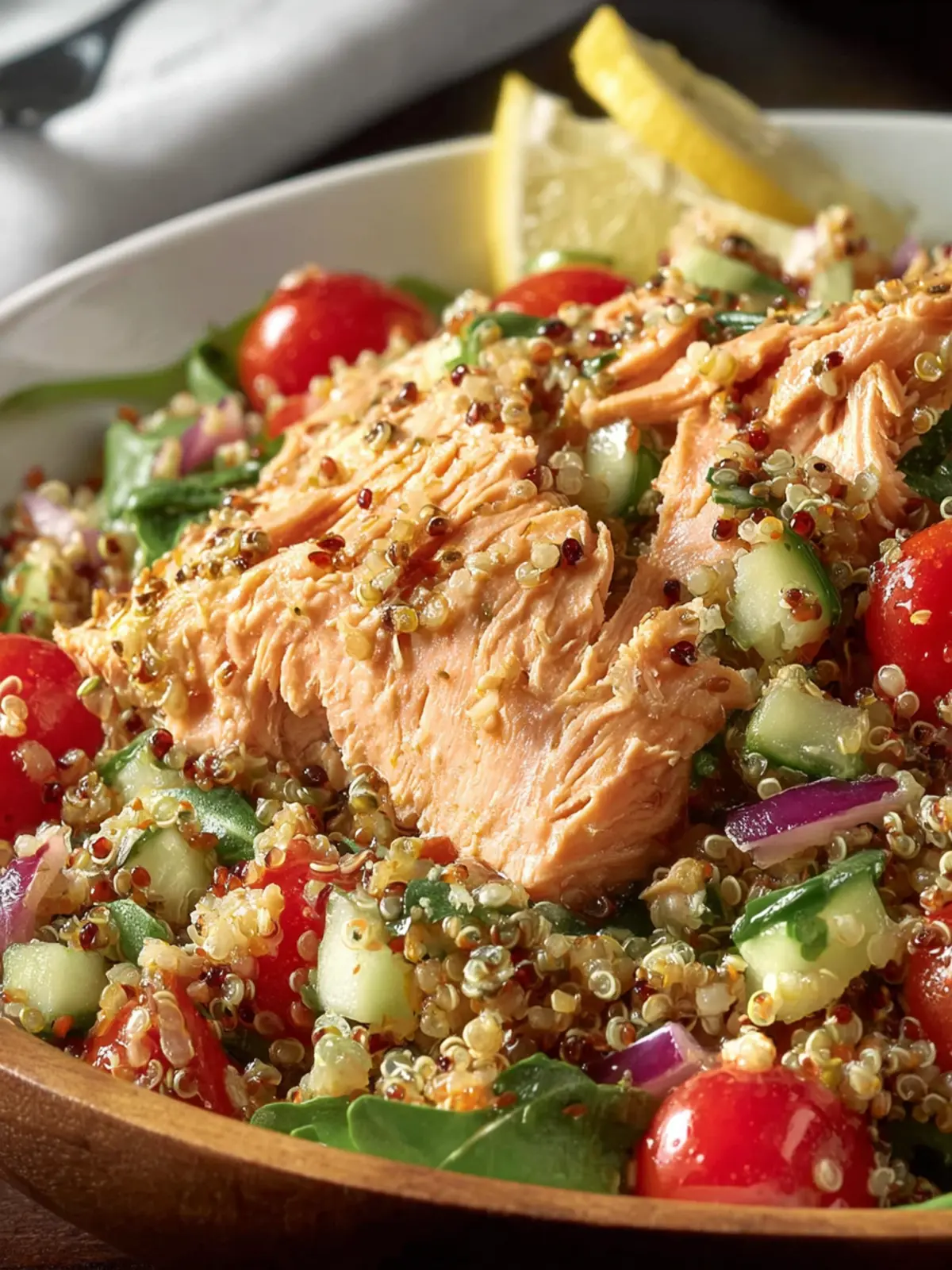 Crafting a delightful Salmon and Quinoa Salad isn’t just about the ingredients; it’s about the experience of bringing them together. Imagine the freshness of the salmon, paired harmoniously with the nutty quinoa and a zesty lemon vinaigrette. Here are some handy tips to elevate your salad to perfection:
